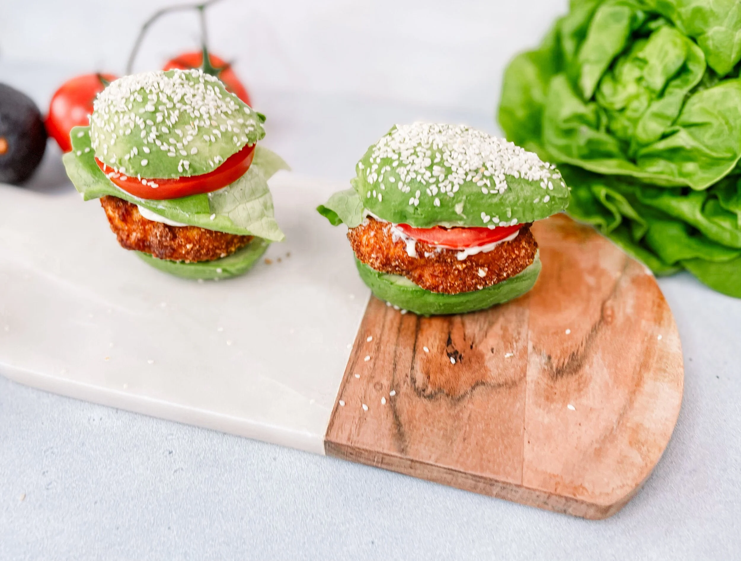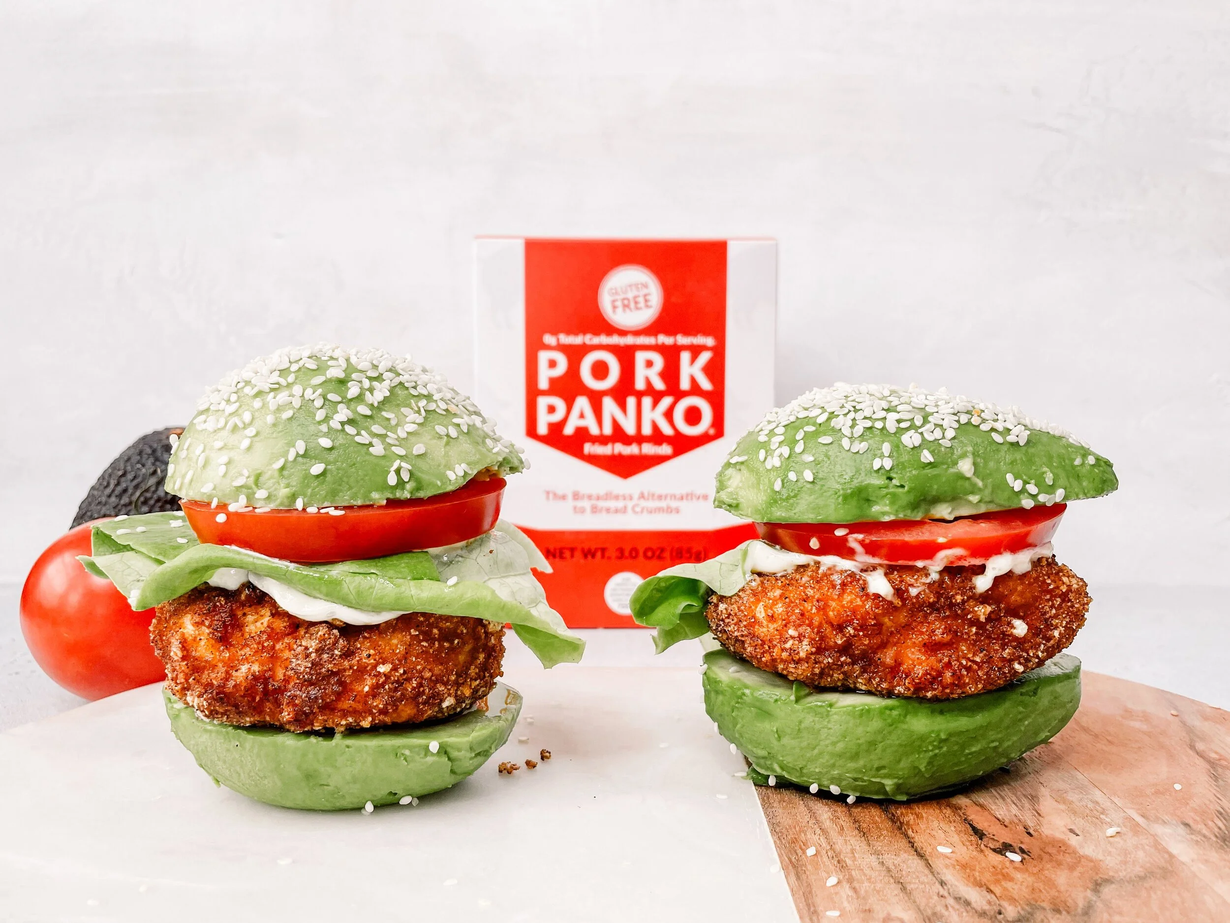 /Who says a chicken sandwich needs to be full of carbs? This entirely keto and paleo chicken sandwich is carb free! The secrete ingredient is Pork Panko for the breading and using an avocado bun. There is no going back from here.