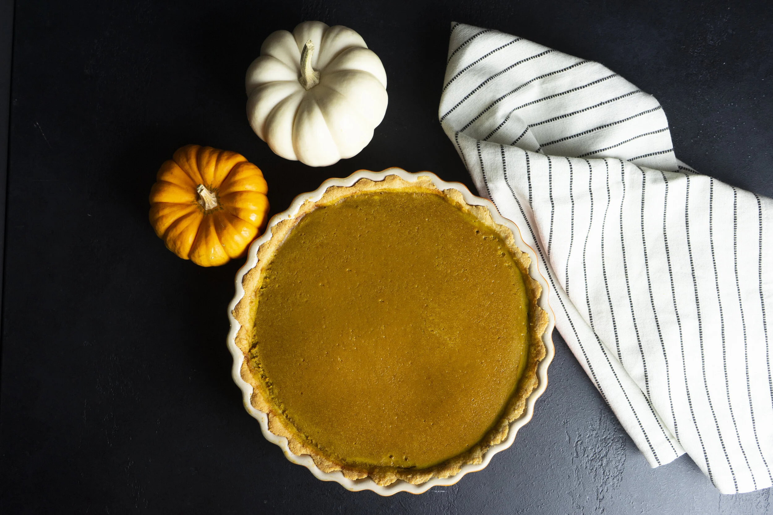 /This pumpkin pie recipe has all the flair of traditional pumpkin pie, but with a healthy, dairy-free and paleo twist. The filling sets while still being creamy and has some spiciness from the addition of pumpkin spice and cinnamon. The additions of coconut milk and a paleo pie crust make this the perfect pie to bring to a get-together because everyone will be able to enjoy it.